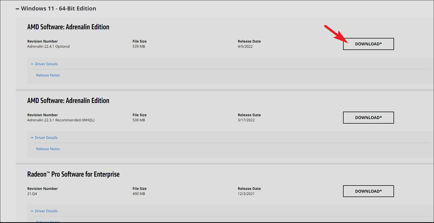 If the above methods don't work, you can manually download the latest drivers from AMD's official website.