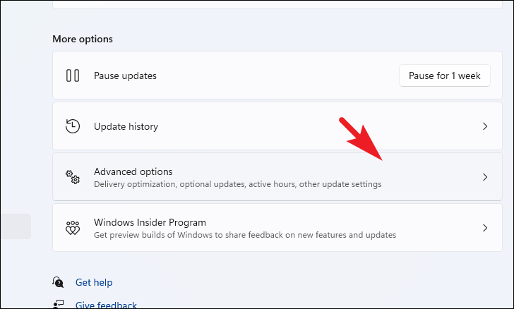 Step 3: On the Windows Update page, click on "Advanced options" under the "More options" section.