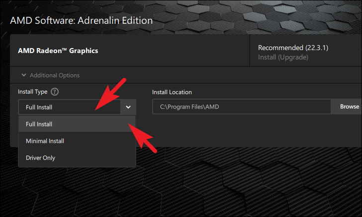 Step 7: Under the expanded options, you can choose the installation type by clicking the dropdown menu under "Install Type". Select from: