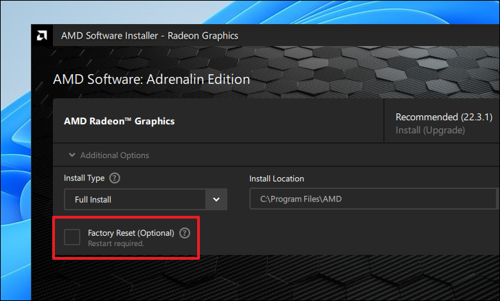 Step 9: To reset your driver settings to their default state, check the box next to "Factory Reset".