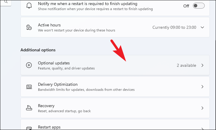Step 4: Scroll down and select "Optional updates" under the "Additional options" section.