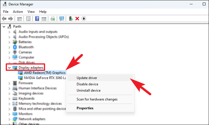 Step 3: Right-click on your AMD device and select "Update driver" from the context menu.