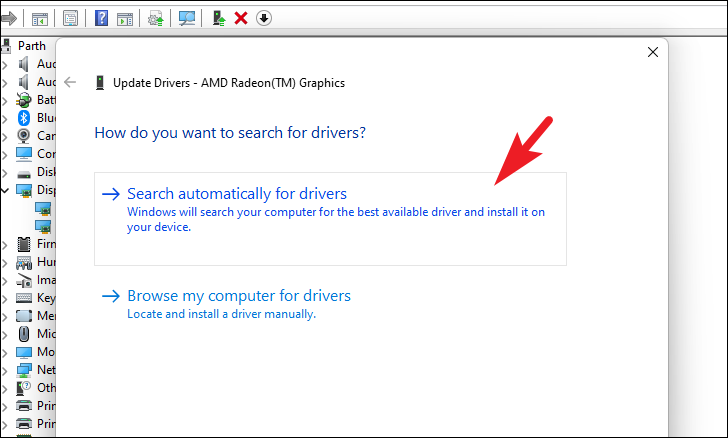 Step 4: A new window will appear. Choose "Search automatically for drivers" to allow Windows to find and install the latest driver.