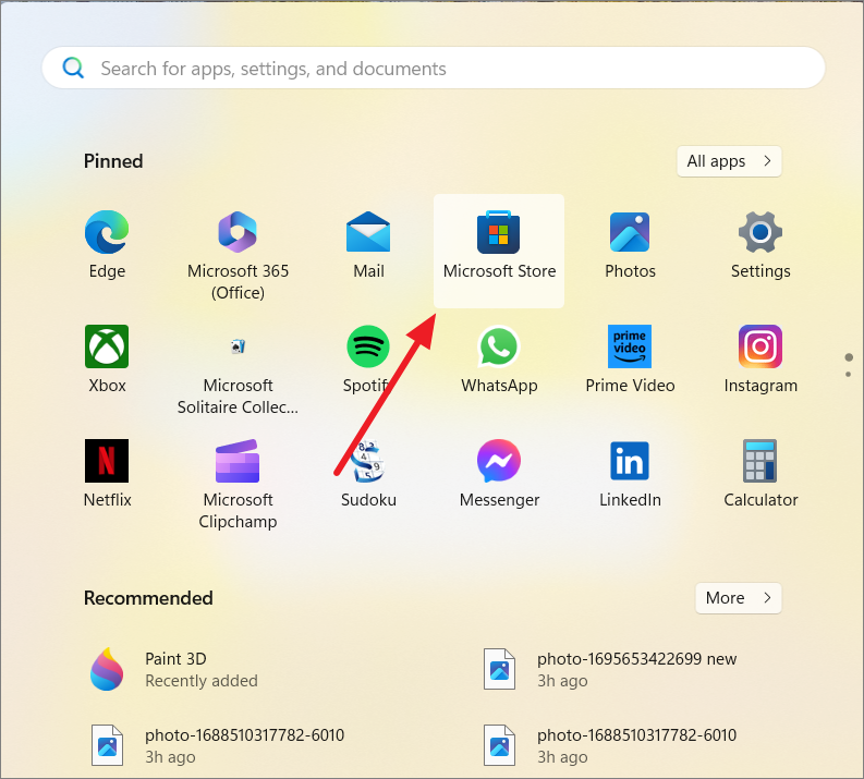 - Open the 'Microsoft Store' app from the Start menu.
