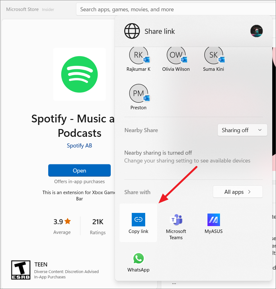 - Then, open the app's page and copy the app's URL.