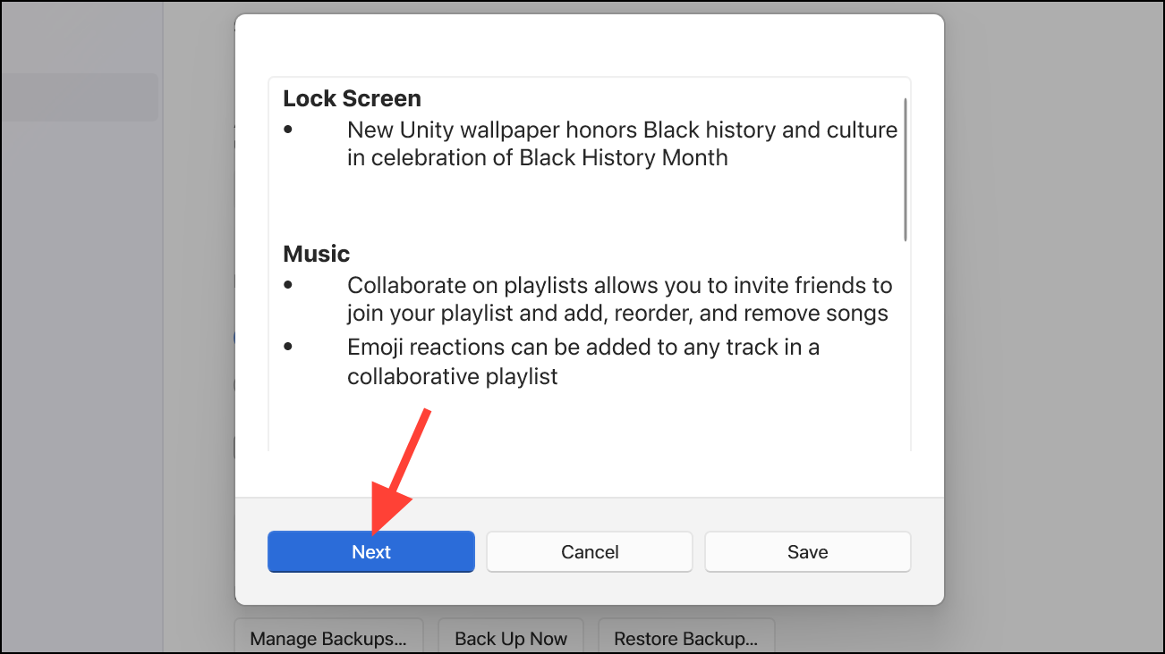 - Features from the new update will be listed on your screen; click 'Next' to proceed.