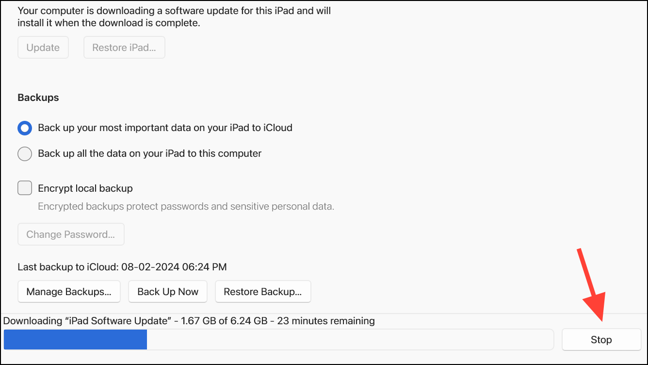 - The app will begin downloading the new update, and you can see the progress on the screen. You can click the 'Stop' button to stop it anytime.
