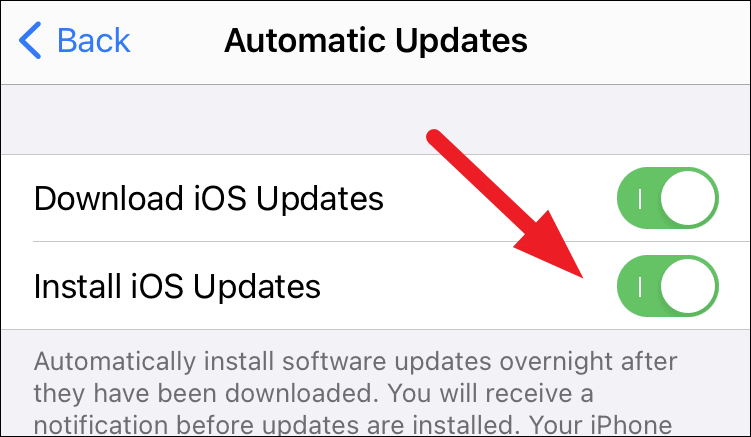 In case you also wish to let your iPhone automatically install the downloaded updates out of your active hours, toggle the switch to the ‘On’ position following the ‘Install iOS Updates’ option.