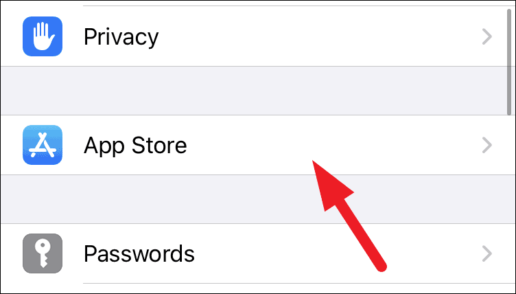 Next, scroll to locate the ‘App Store’ option from the ‘Settings’ screen and tap on it.