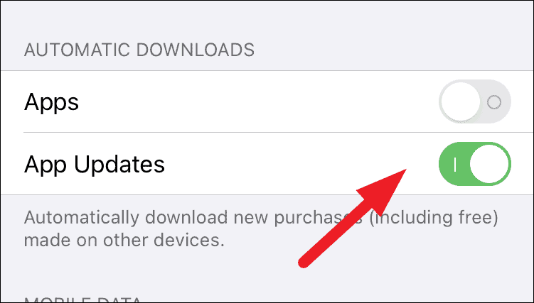 Next, toggle the switch to the ‘On’ position following the ‘App Updates’ option.