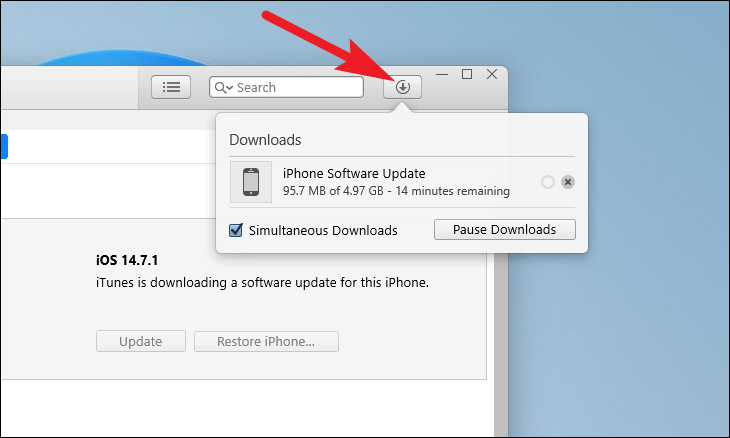 iTunes will now download the new iOS version. You can track the progress of the download by clicking on the ‘Download’ button.