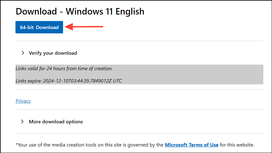 - Go to Microsoft's Windows 11 download page and download the ISO as in the previous method.