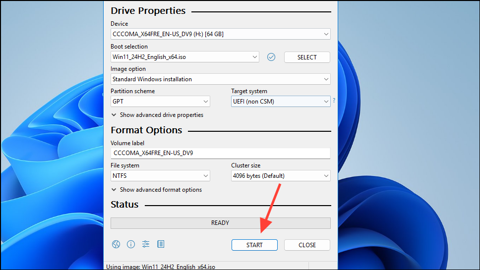 - Once the file is downloaded, open a new browser tab and go to the Rufus website. Rufus is the tool that will let you create a bootable USB for installing 24H2 on your computer.