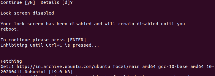Step 5: Once you confirm, the upgrade process will disable the lock screen and prompt you to press Enter to proceed.