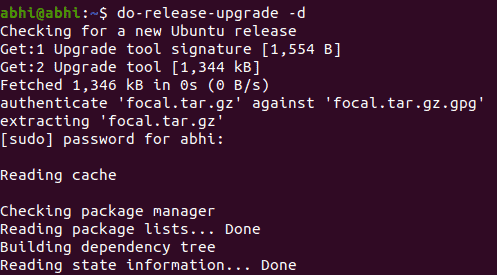 Notice the -d flag in the command. This flag forces the system to upgrade to the latest development release. Since direct upgrades to the newest LTS release may not be immediately available upon release, using -d ensures you can upgrade to Ubuntu 20.04 LTS without waiting.