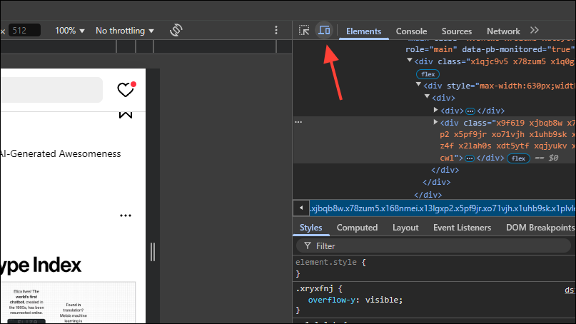 Step 3: In the developer panel, click the mobile device icon located at the top-left corner (beside "Elements") to activate mobile view. Choose a mobile device model (e.g., iPhone) from the dropdown menu at the top of the page.