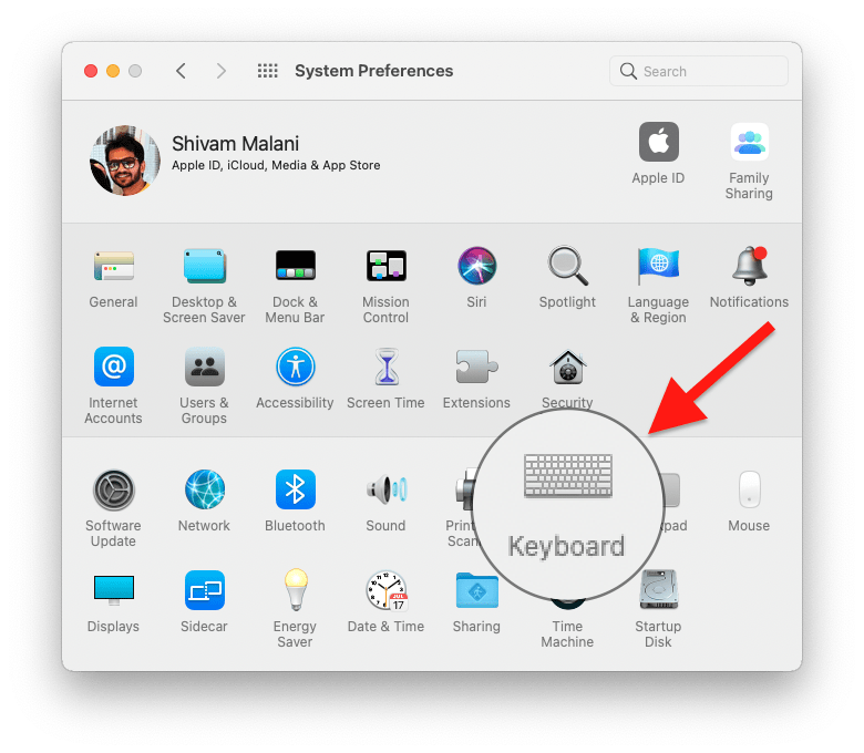 After swapping the ‘Alt’ and ‘Win’ keycaps on your keyboard, open ‘System Preferences’ on your Mac and select the ‘Keyboard’ option.