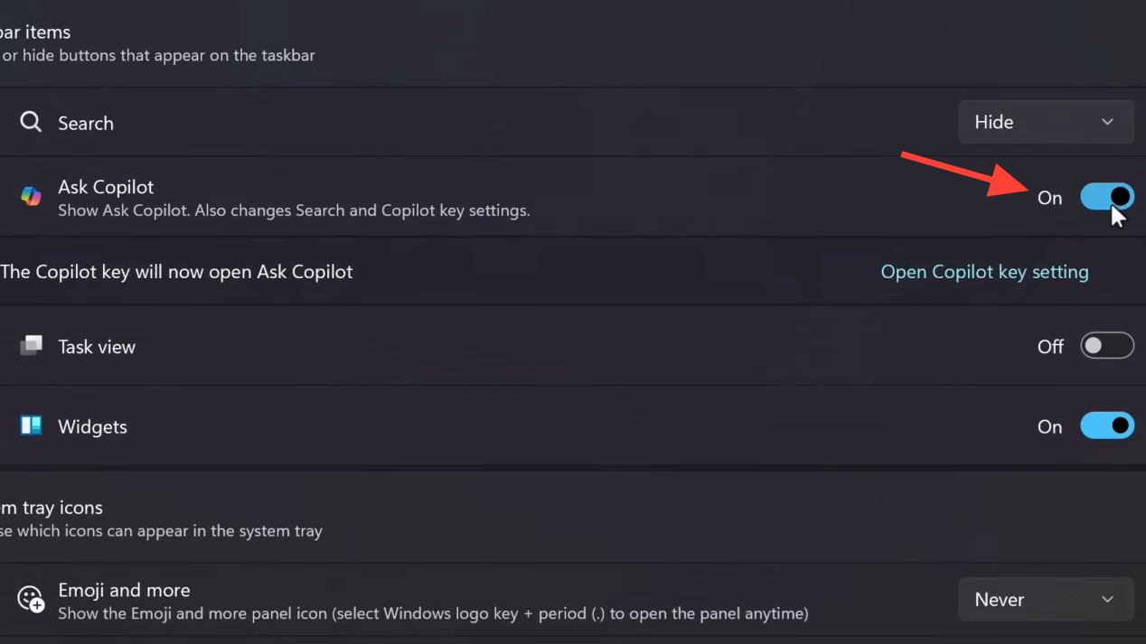 Use Ask Copilot on the taskbar as your entry point
