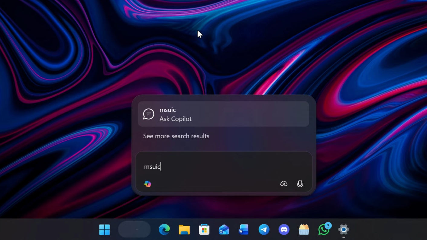 The traditional Windows search box is being replaced with a new Ask Copilot experience on the taskbar. This box combines local search for apps, files, and settings with direct access to Microsoft 365 Copilot and AI agents.
