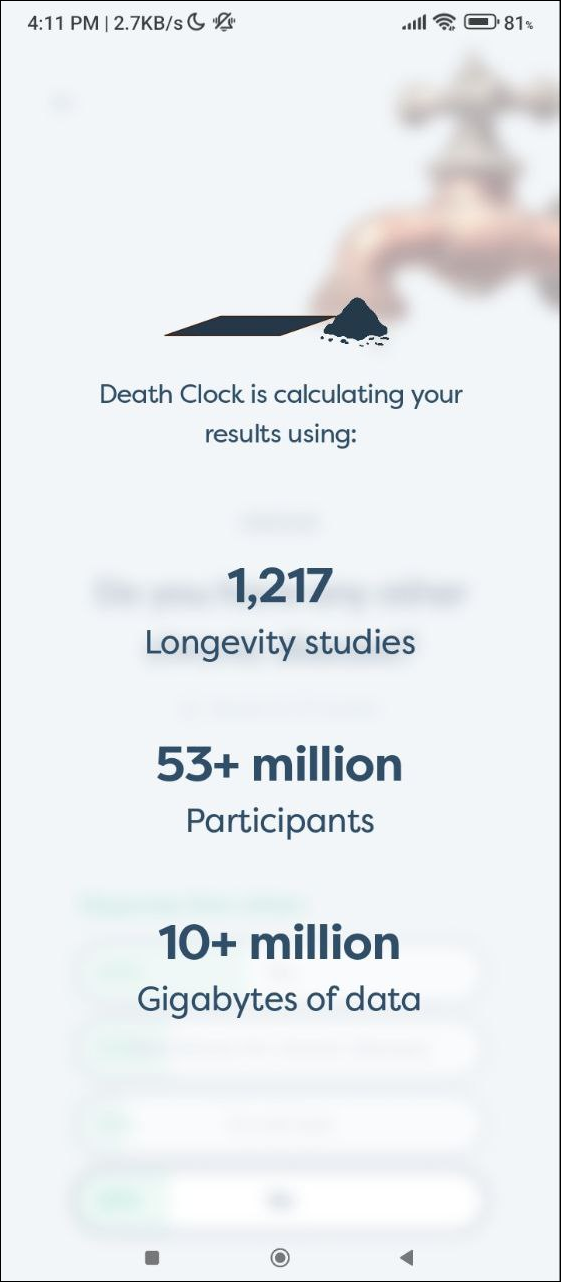 - The app can also show you how much time you can gain by adopting healthier lifestyles. This will change your death date from the expected date.