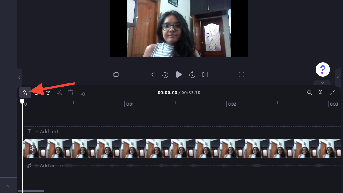 - Then, click the 'AI Suggestions' icon from the toolbar above the video scrubber.