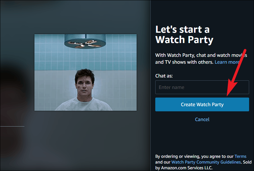 Enter the name you want to use in the party chat and click on the ‘Create Watch Party’ option.