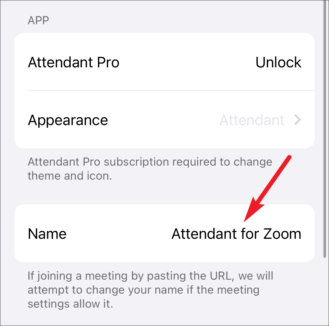 Note: If you don’t change the name from the Attendant app, the default participant name when you join the meeting from the app would also be ‘Attendant for Zoom’. You can change the display name from the app settings. Tap on the ‘Setting’ icon and then change the name in the ‘Name’ field.