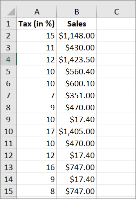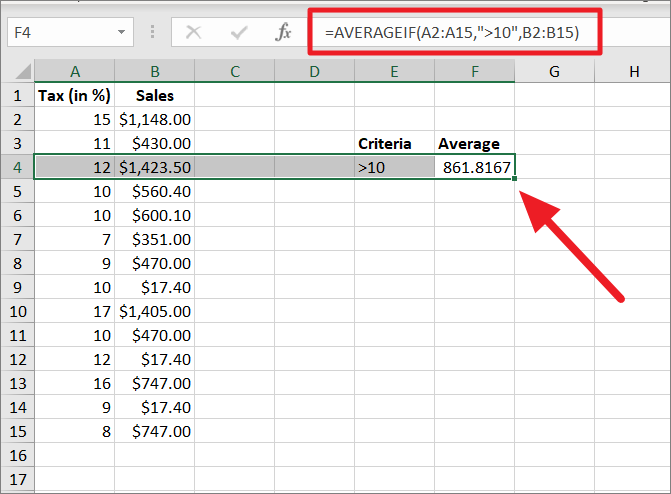 =AVERAGEIF(A2:A15,">10",B2:B15)The formula checks the range A2:A15 for values greater than 10% and if the values are found (to meet the criteria), it calculates the average for the corresponding values in the range B2:B15.