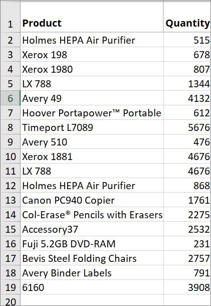 Suppose you have the below table and you want to find the average quantity of ‘Xerox’ products.