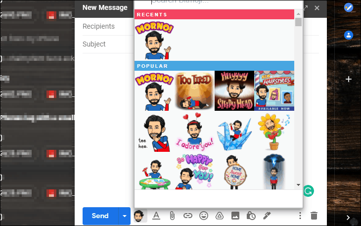 Once Bitmoji is added to Gmail, you can access it from the toolbar at the bottom and add a Bitmoji to the email.
