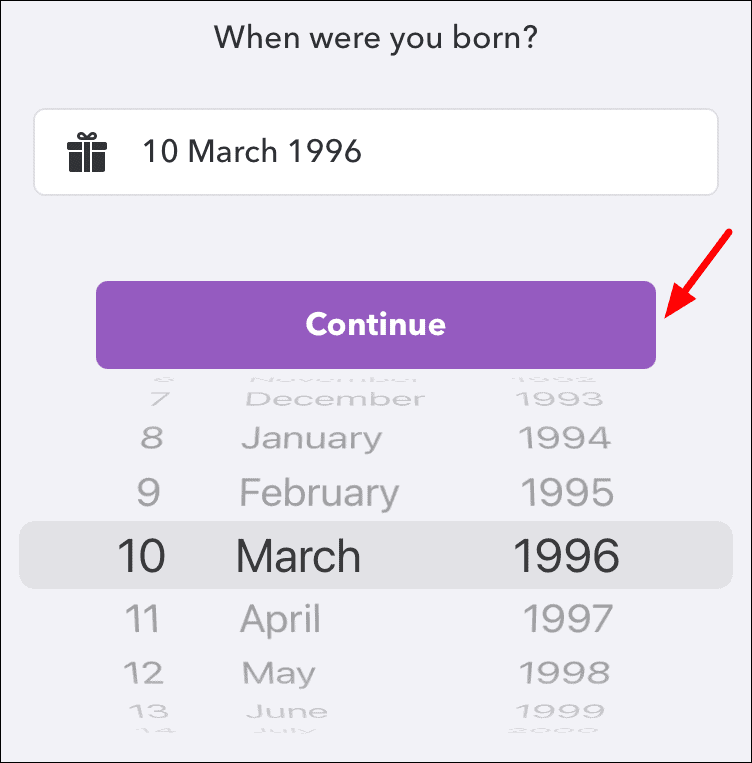 Next, select your date of birth and tap on ‘Continue’ to proceed.