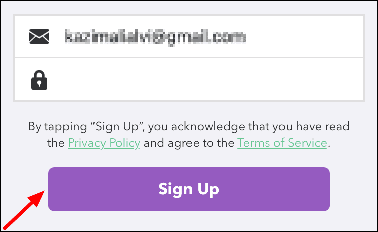 Enter your email for the Bitmoji account in the first box and the password in the last one and then tap on ‘Sign Up’ to create an account.