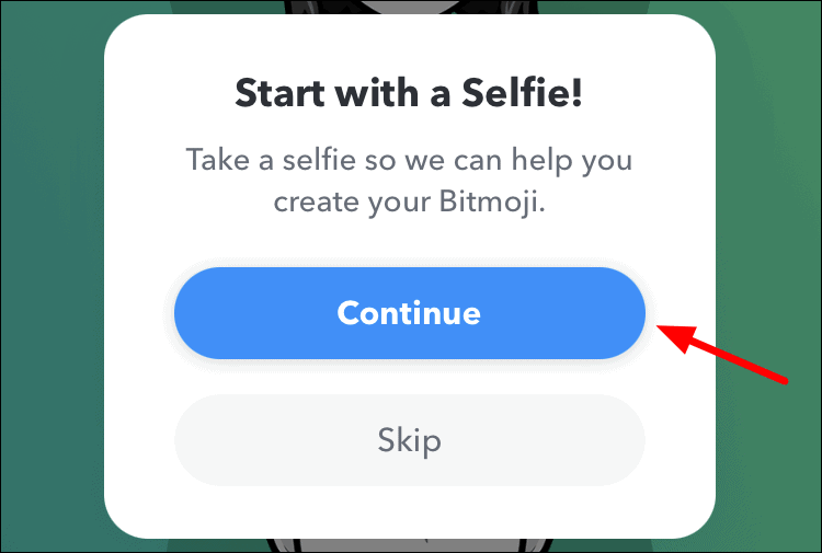 Select your gender on the next screen and then tap on ‘Continue’ to click a selfie for your Bitmoji account.