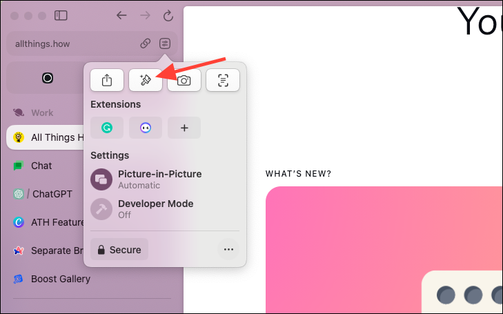 - Open the Arc Browser on your Mac and navigate to the website that you want to customize.