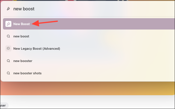 Cmd+Tand typing 'New Boost' into the Command Bar.
