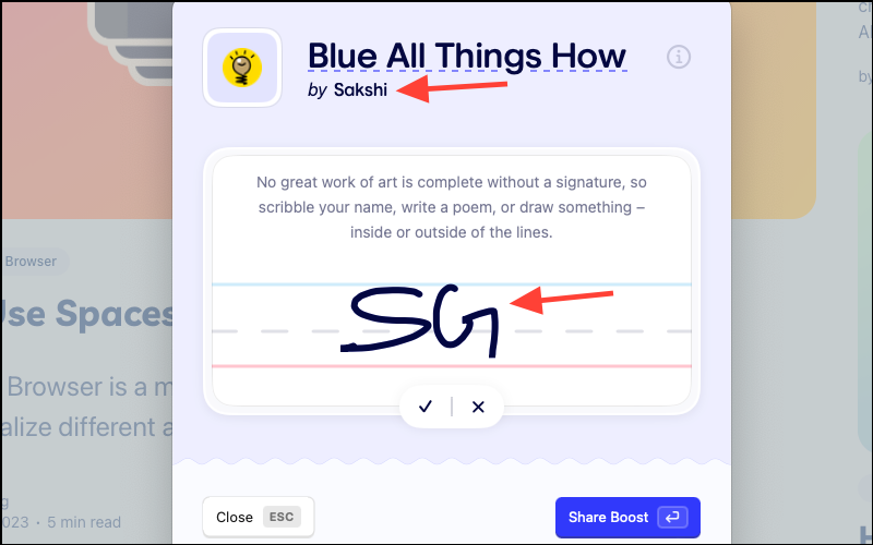 - Then, you can choose to add your name or share the boost anonymously. You can also add a signature by clicking the 'Signature' option.
