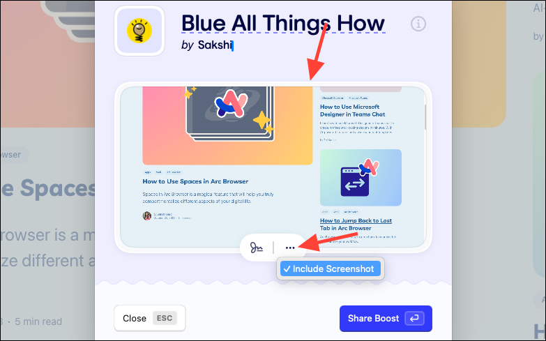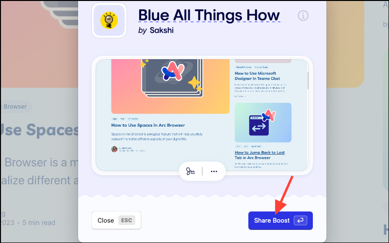 - Share: You can also share your Boosts with other Arc users using the blue Share button at the bottom of the Boost editor.