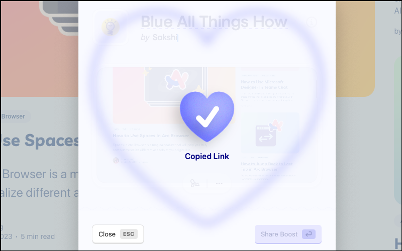- A link will be created and copied to your clipboard. Share it with others so they can install the Boost on their Arc browser.