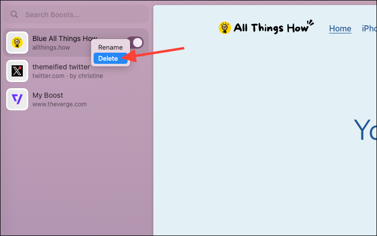 - You can also right-click on the website from the sidebar and select 'Boost this site' from the menu.