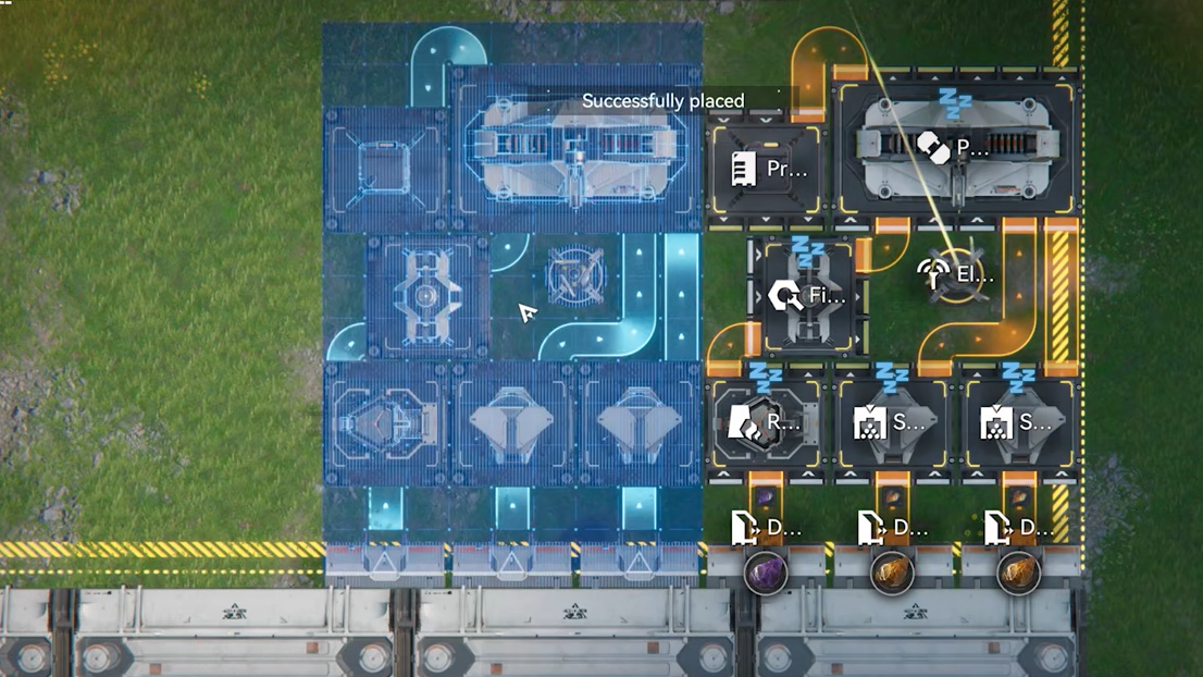 Step 4: Confirm the import. The game will load the layout onto your PAC grid, showing facility positions and conveyor belts.