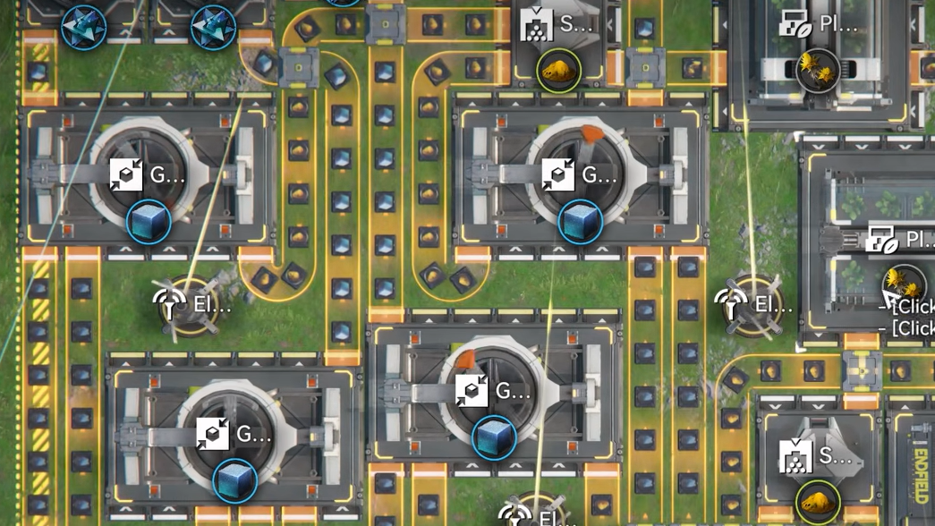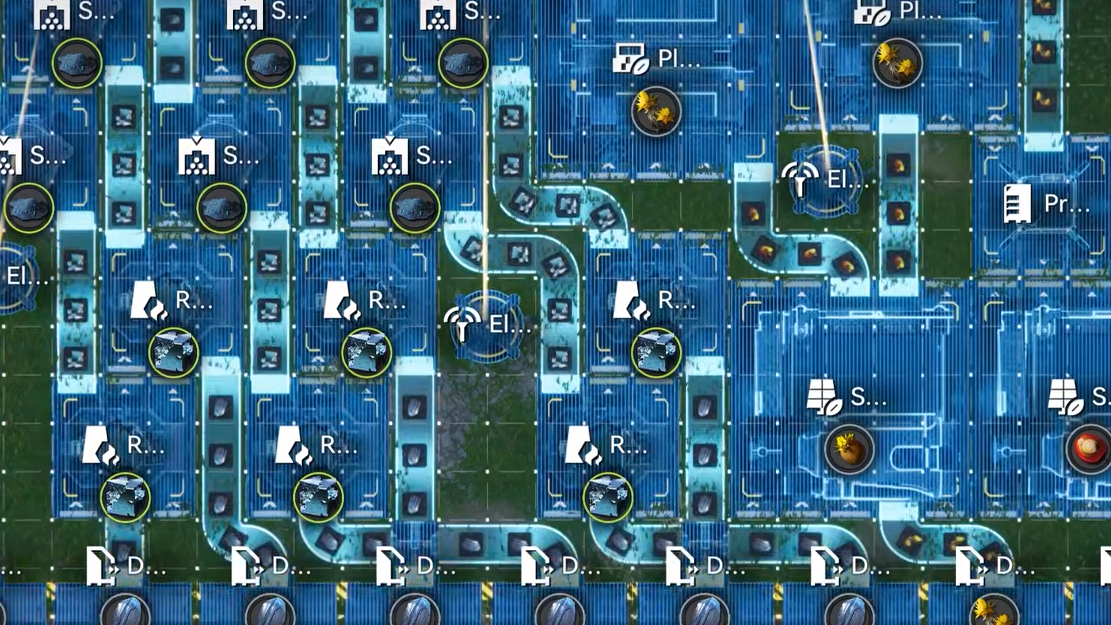 - Power coverage — make sure Electric Pylons cover every production building, especially at the edges of the layout.