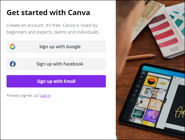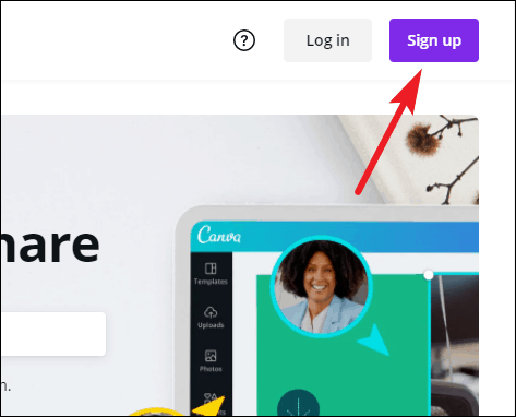 Go to canva.com and create a free account. Click the ‘Sign Up’ button to create a new account.