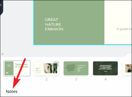 Click the ‘Notes’ option to add notes to the presentation that you can use for reference while presenting.