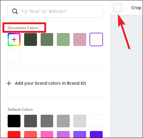 When you click the color option, a palette for document colors will appear above, followed by available default colors. For free users, only limited color options are available. If you have a Brand Kit (available only for Canva Pro users), that palette will also appear here.