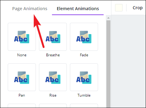 ‘Element animations’ will open. To switch to page animations, click the ‘Page Animations’ tab.