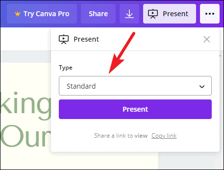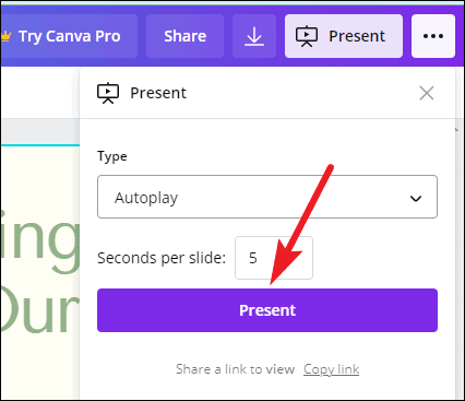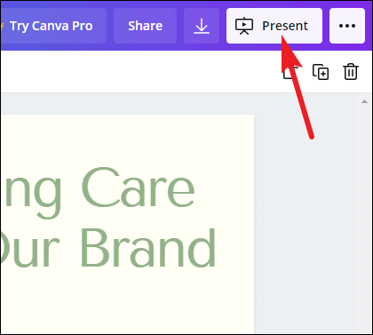 To present straight from Canva, click the ‘Present’ button.