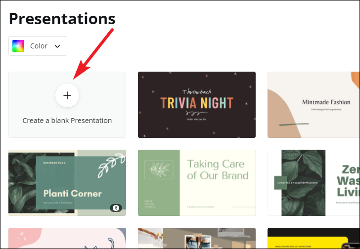 One of the things that makes Canva so easy to use for everyone is the sheer number of templates. The assortment of templates in existence ensures that you’ll find something to match your needs. But if not, you can also start with a blank slate and create your presentation from scratch.