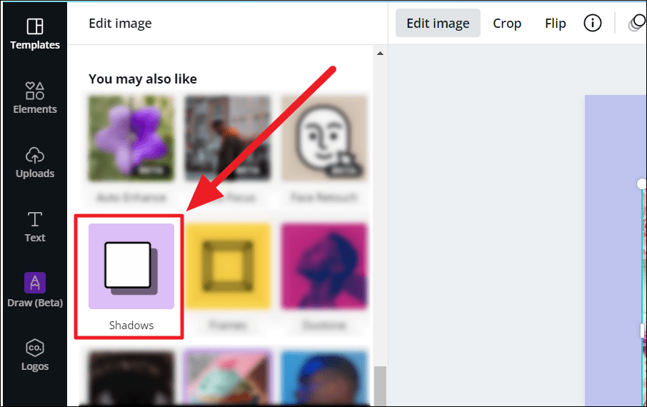 Now, to connect with the ‘Shadows’ application. Scroll through the ‘Edit image’ option to the ‘You may also like’ section’. Select the ‘Shadows’ block from this list.