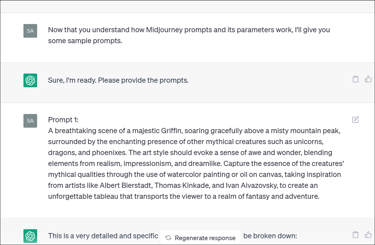 - ChatGPT will then generate a detailed prompt for Midjourney based on your selection.