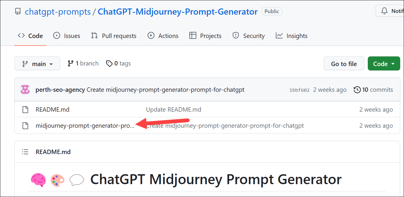 - Click on the 'midjourney-prompt-generator-prompt-for-chatgpt' file.